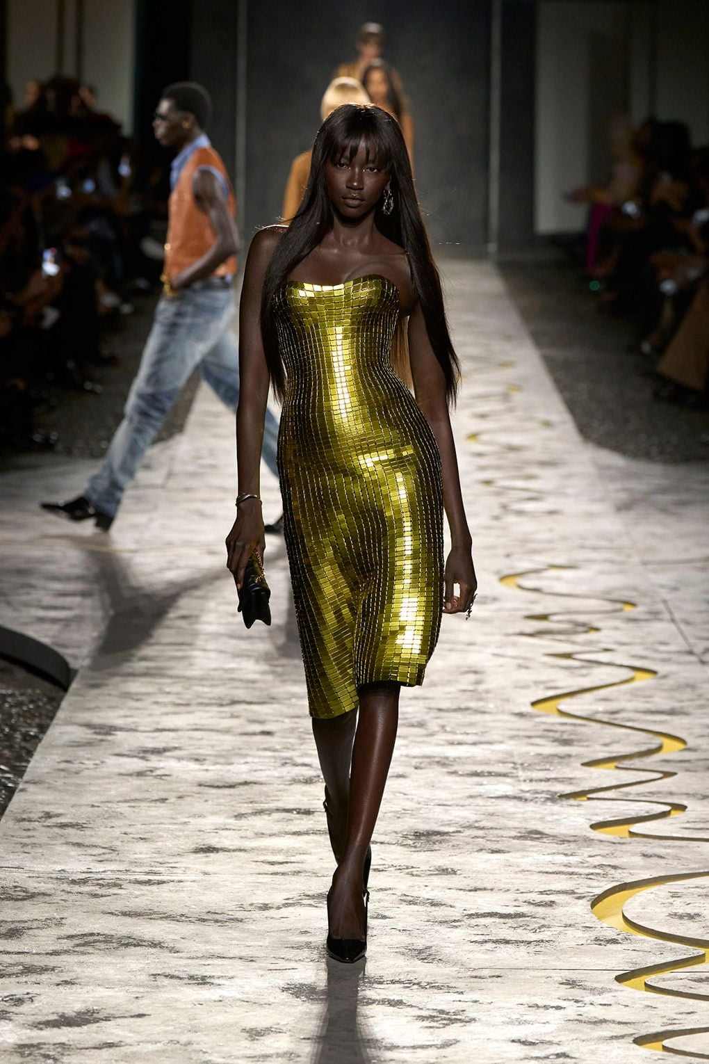 Với bộ sưu tập Xuân 2025, Versace đã tạo ra một cuộc đối thoại giữa quá khứ và tương lai. Những họa tiết cổ điển như hoa văn và áo lưới xích được tái hiện một cách hiện đại, kết hợp với những công nghệ tiên tiến như in 3D. Bảng màu pastel dịu nhẹ cùng với những đường cắt táo bạo đã tạo nên một tổng thể hài hòa, vừa quen thuộc vừa mới lạ. Chiếc váy hở vai in 3D của Anok Yai là một minh chứng rõ ràng cho thấy Versace luôn đi đầu trong việc khám phá những khả năng mới của thời trang.